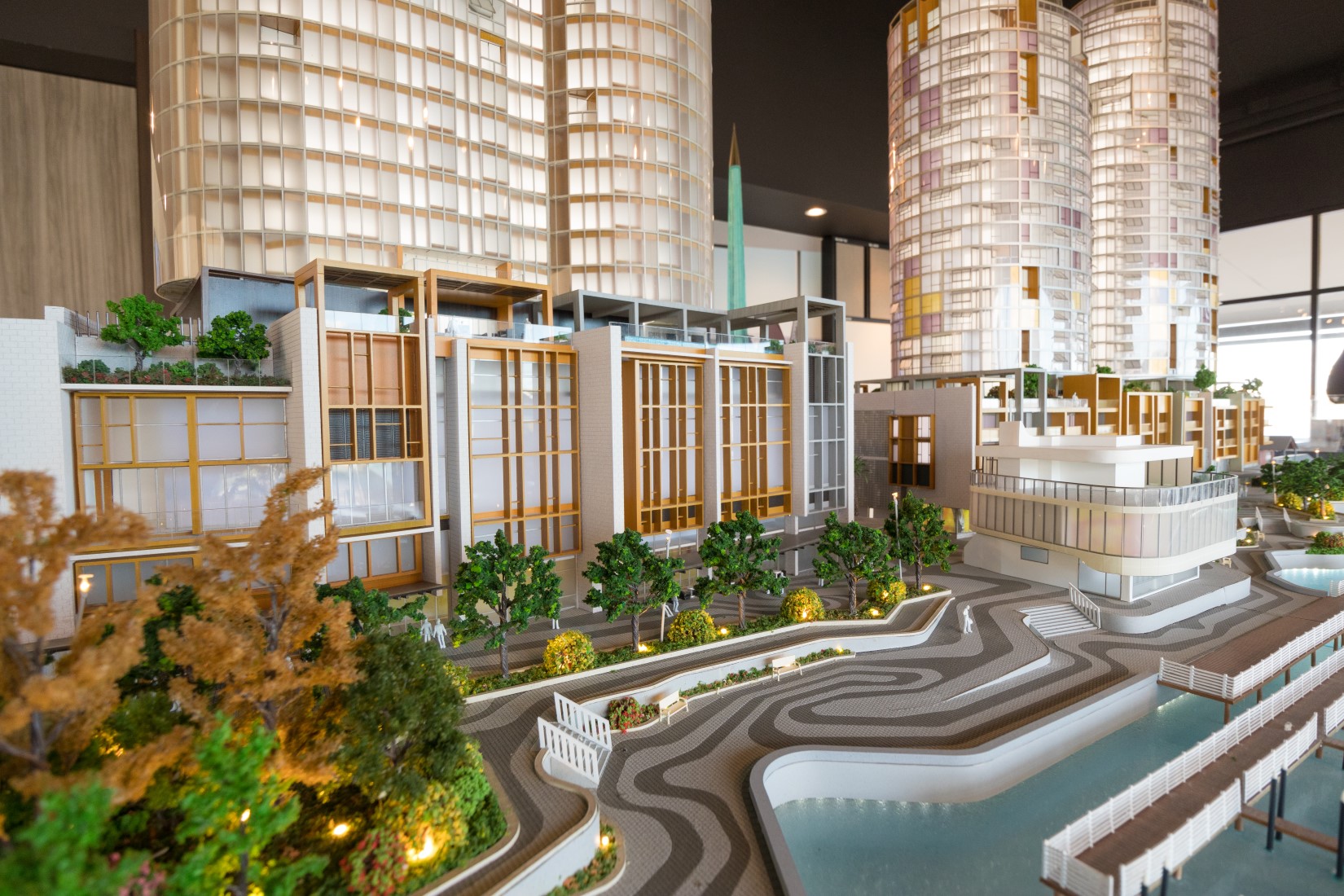 Over looking the construction site at Elizabeth Quay is the sales office for The Towers. Inside are the following scale models of the plan. Construction is on track for a mid 2019 completion with sales of the apartments going smoothly.